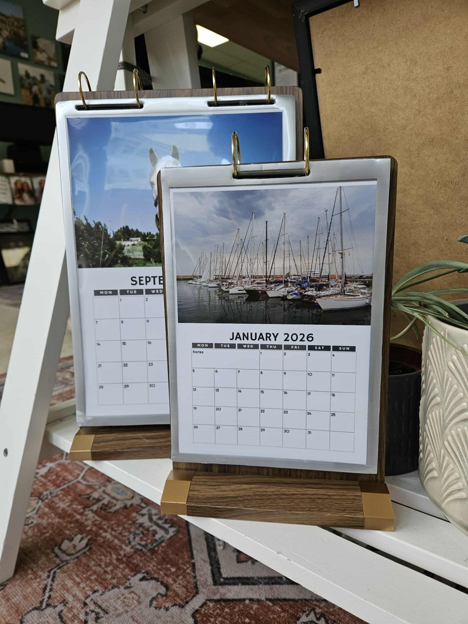 What makes it special: • 12 personal photos - one for each month of the year • A4 or A5 size - perfect for desks, or kitchens • Notes section on every page for appointments and reminders • High-quality printing on durable paper that lasts all year • Spiral-bound with sturdy backing for easy page turning • Same-day creation when you visit our Honiton shop